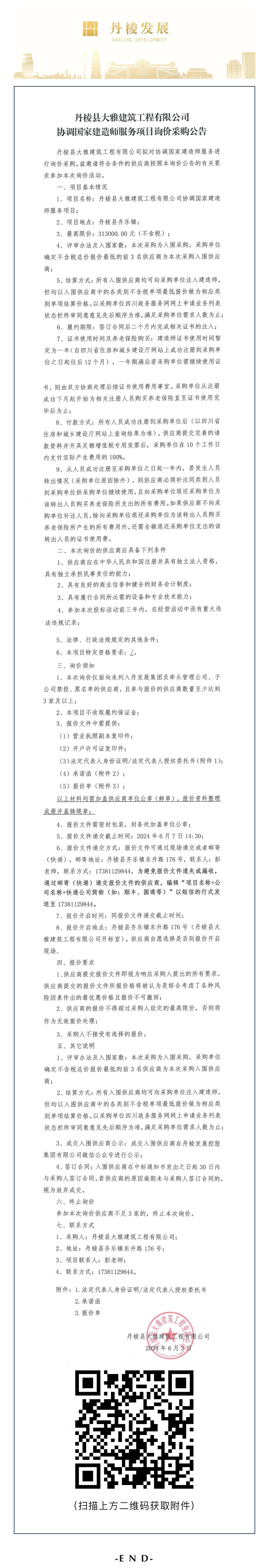 丹棱縣大雅建筑工程有限公司協(xié)調(diào)國家建造師服務(wù)項(xiàng)目詢價采購公告