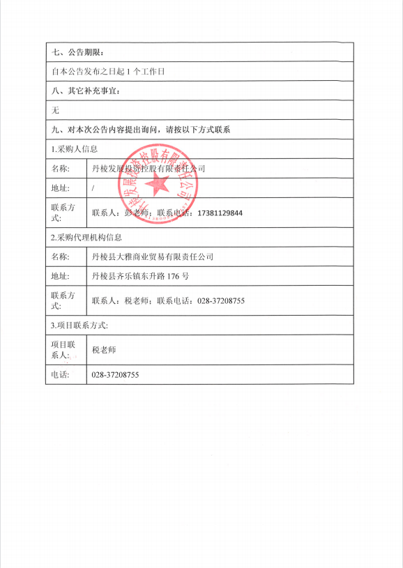 【丹發(fā)展公司】丹棱發(fā)展投資控股有限責(zé)任公司供應(yīng)商目錄庫入庫代理機(jī)構(gòu)采購項(xiàng)目競(jìng)爭(zhēng)性磋商成交公告