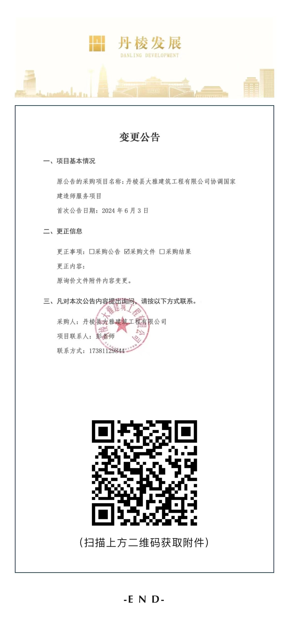 丹棱縣大雅建筑工程有限公司協(xié)調國家建造師服務項目變更公告