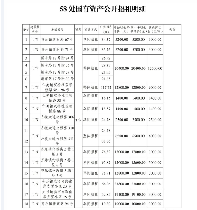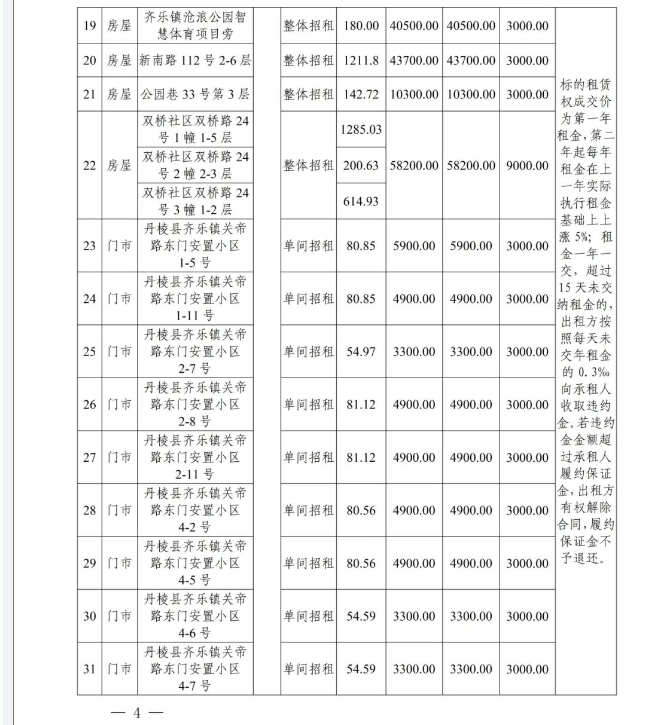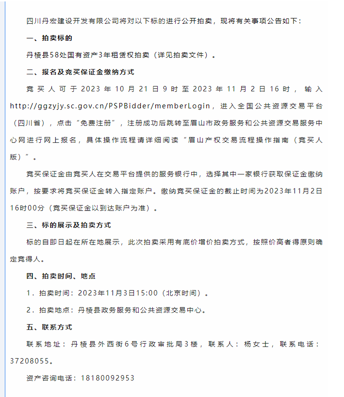 丹棱縣58處國有資產(chǎn)3年租賃權(quán)拍賣公告