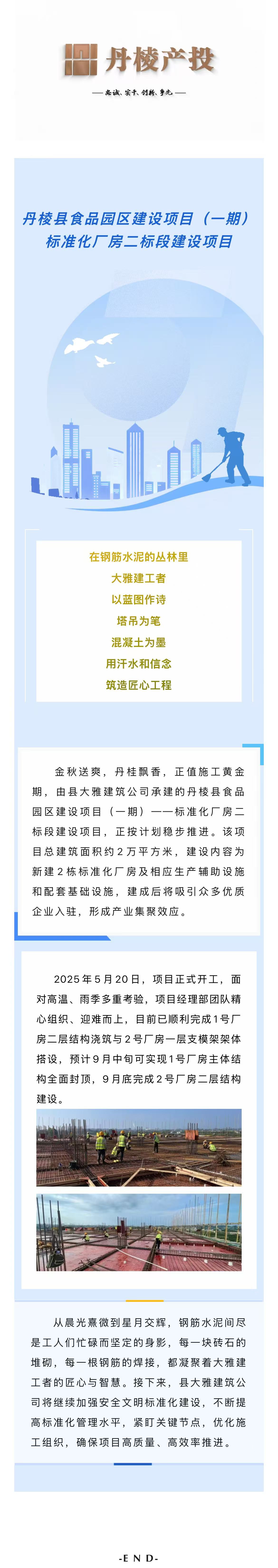 【縣大雅建筑公司】丹棱縣食品園區(qū)建設(shè)項目(一期)——標(biāo)準(zhǔn)化廠房二標(biāo)段建設(shè)項目穩(wěn)步推進
